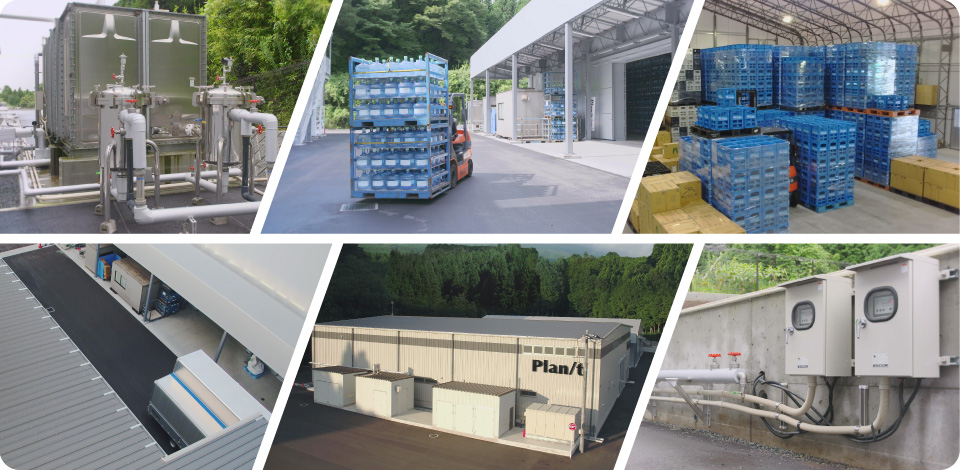 敷地面積 8,230㎡ 建物総面積 1,307㎡ 生産能力 12ℓ:450本/1h リターナブル 12ℓ:600本/1h ワンウェイ 8ℓ:1,200本/1h ワンウェイ |